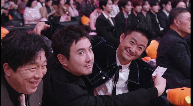 不过,要说全场最欢乐的名场面,那必须是沈腾和吴京的“老年组”互动。沈腾刚落座就从口袋里掏出一小包饼干,趁镜头没对准偷偷往嘴里塞,腮帮鼓鼓的模样像极了偷吃的小朋友,被网友调侃“微博之夜是不管饭吗,腾哥饿成这样”。等工作人员喊两人合影时,他慢悠悠掏出老花镜戴上,眯着眼认真整理西装领口,那股子“老干部仪式感”让旁边的吴京都忍不住笑场。而吴京的“老年感”则体现在硬核保暖上,当晚气温偏低,别人都在硬扛严寒凹造型,他却把西装外套裹得严严实实,拍照时左手揣在口袋里不肯拿出来,被网友笑称“行走的保暖标兵”。