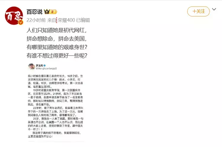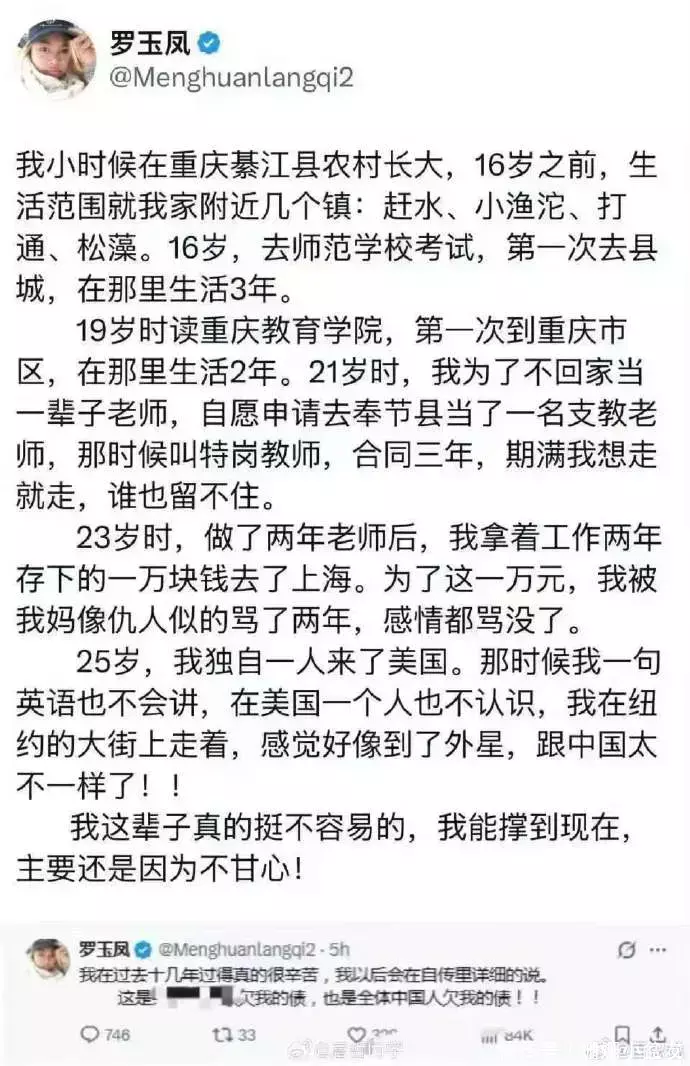 有人觉得她还是当年那个 “语出惊人” 的凤姐,也有人从她的经历里看到了普通人的挣扎:从重庆农村到美国纽约,从乡村教师到网红再到留学生,她的每一步都走得磕磕绊绊,却始终没停下脚步。